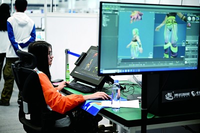 今年9月,第三届全国技能大赛在河南郑州举行。大赛选手在3D数字游戏艺术项目比赛中。 新华社发